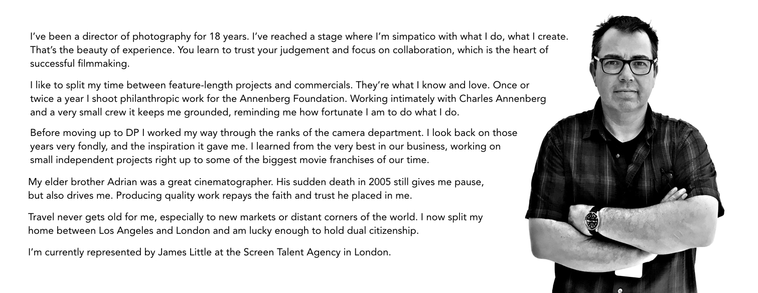 I was the A camera assistant for John Toll on Braveheart when he won his second straight Oscar. Being part of an academy award winning team is huge for me. I know from experience what a collective effort it is to reach that pinnacle. My Brother was nominated for Thelma and Louise. Something that makes my family and I extremely proud of his legacy.